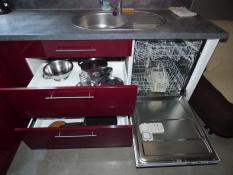 . Une pièce principale avec table, chaises, TV HD, banquette type "BZ" convertible en lit 2 places et coin cuisine équipée: plaque vitrocéramique, évier, lave-vaisselle, réfrigérateur avec compartiment Freezer, four multifonction (chaleur tournante, micro-ondes, gril), cafetière filtre, bouilloire, grille pain.